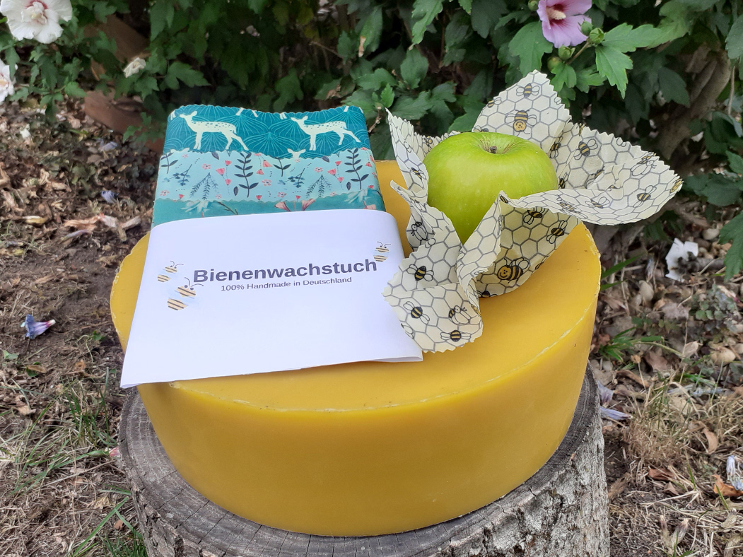 Hilf mit, die Umwelt vor zu viel Verpackungsmüll zu bewahren und benutze Mehrwegverpackungen aus Bienenwachstüchern. Unsere Bienenwachstücher bestehen aus Baumwollstoffen mit den Label Ökotex 100, aus Bienenwachs unserer Imkerei, Baumharz der Schwarzkiefer und Bio-Jojobaöl oder Bio-Kokosöl. In liebevoller Handarbeit verarbeiten wir alle Rohstoffe und stellen praktische Bienenwachstücher her.